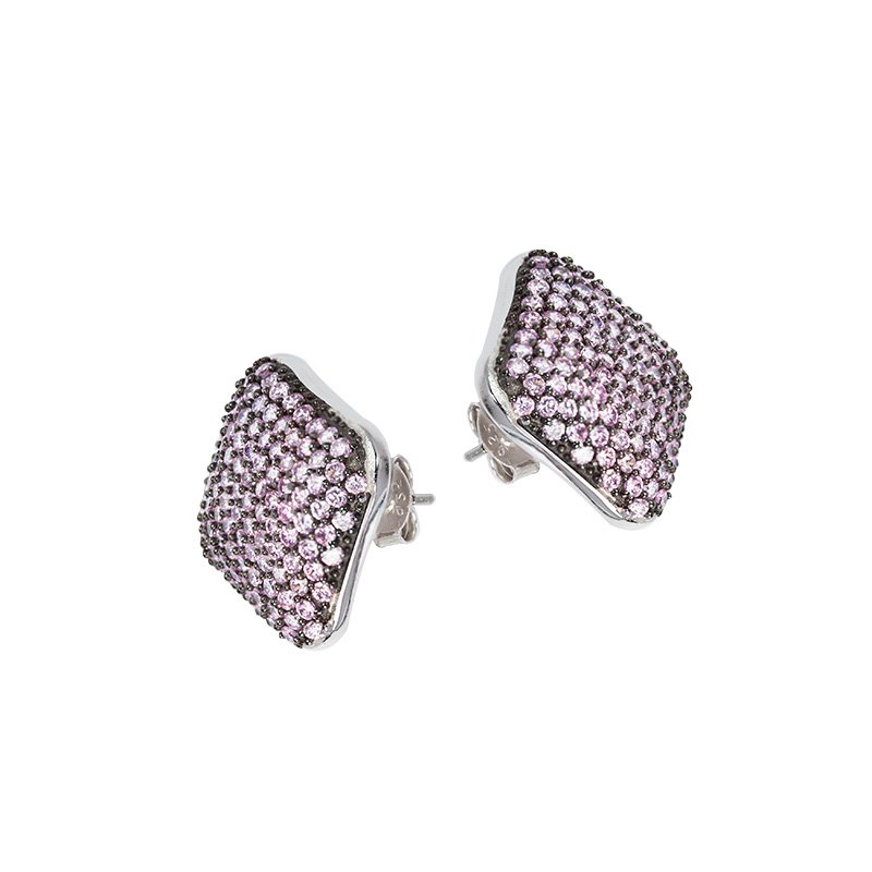 - Pink colour cubic zirconia Square earrings
